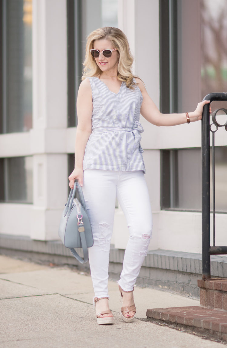 Keep scrolling – this is a big share! We are finally having some warm weather here and it has been absolutely wonderful! For the last two days the high has been 80 degrees, and I am definitely not complaining. It’s a little strange because the trees still don’t have many leaves, but I know that will change in a matter of days. Anyway, with the warmer temperatures, that means it’s time to update your wardrobe and pull out the spring tops. In today’s post I am doing a huge roundup…